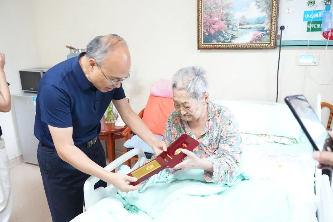 在纪念中国人民抗日战争暨世界反法西斯战争胜利80周年之际,近日,省司法厅党委委员、副厅长,省监狱局党委书记、局长陈刚,省监狱局党委副书记、政委涂晓华走访慰问抗战老战士、老同志,颁发“中国人民抗日战争胜利80周年”纪念章,传递党中央、国务院、中央军委对抗战老战士、老同志的亲切关怀,代表省司法厅、省监狱局向他们及全省监狱系统抗战老战士、老同志致以崇高敬意和诚挚慰问。